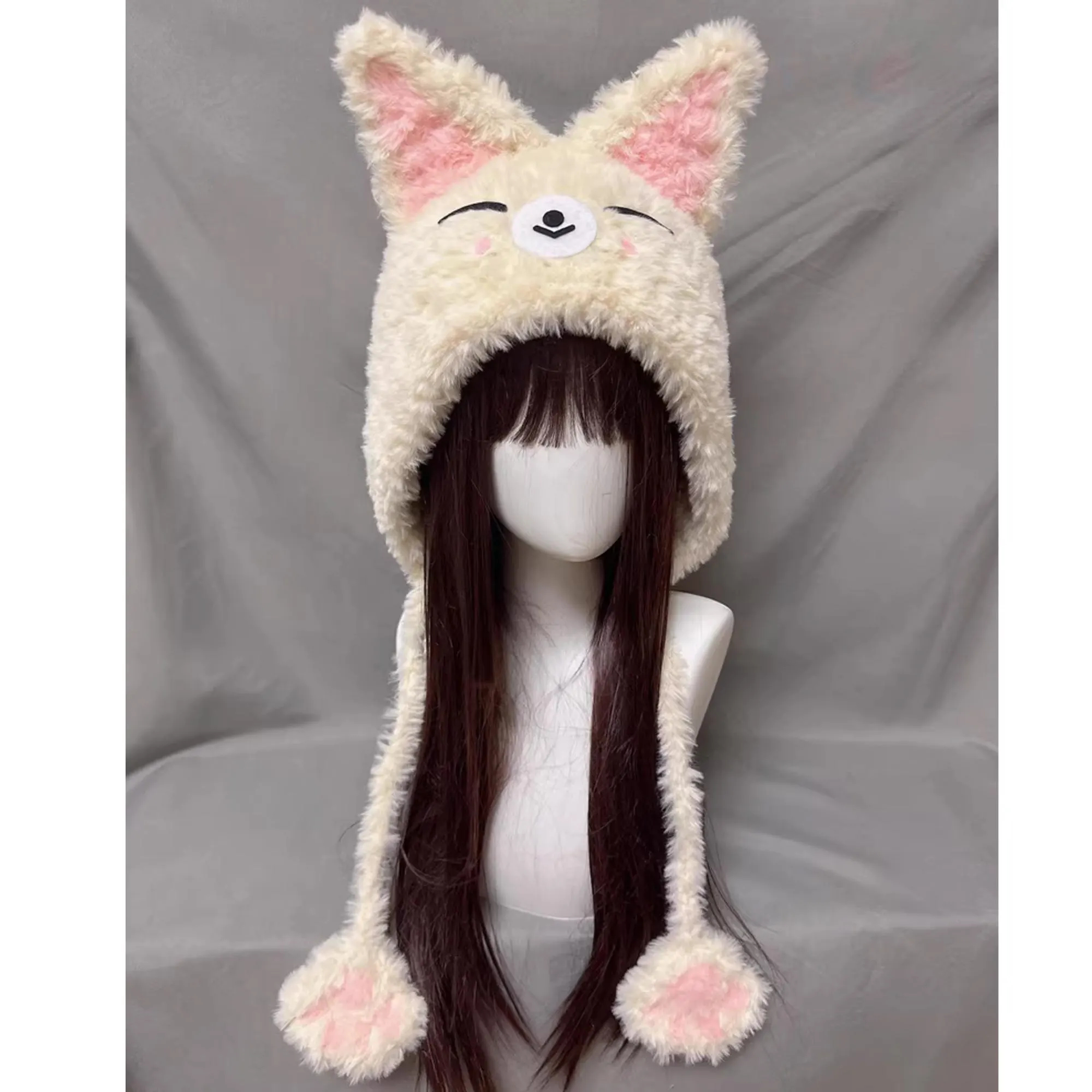 Stay cozy and cute with this Fox Ear Plush Beanie. Designed in a fluffy cream tone with oversized fox ears and an embroidered sleepy expression, it adds a playful, soft aesthetic to any outfit. Warm, comfy, and easy to style—ideal for daily wear, travel, and gifting.