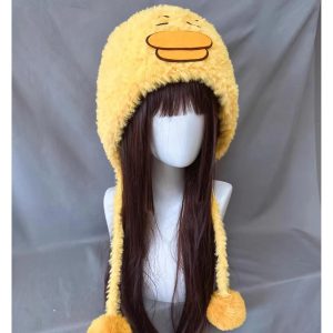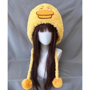 Stay cozy and cute with this Duck Plush Beanie. Designed in fluffy yellow plush with an adorable duck bill and sleepy embroidered eyes, it’s a warm statement hat that instantly brightens your outfit. Soft, comfy, and easy to style—great for daily wear, travel, and fun photo moments.
