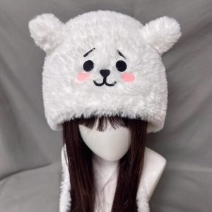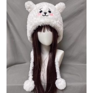Stay cozy and cute with this White Bear Plush Beanie. Made in fluffy white plush with rounded bear ears and a sweet embroidered face, it’s a warm statement hat that pairs easily with any winter outfit. Soft, comfortable, and camera-ready—great for daily wear, travel, and gifting.