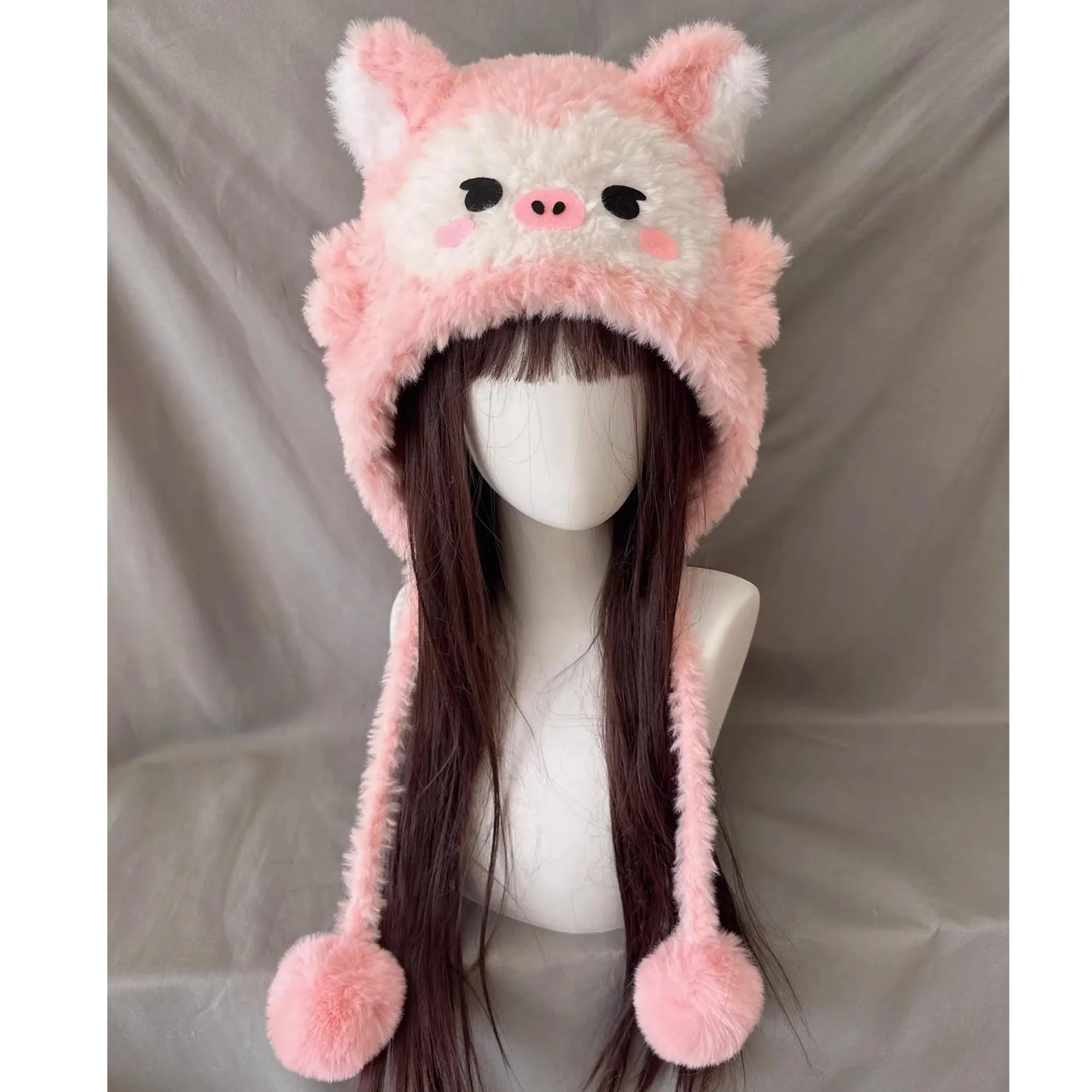 fluffy pig ear knitted warm hat