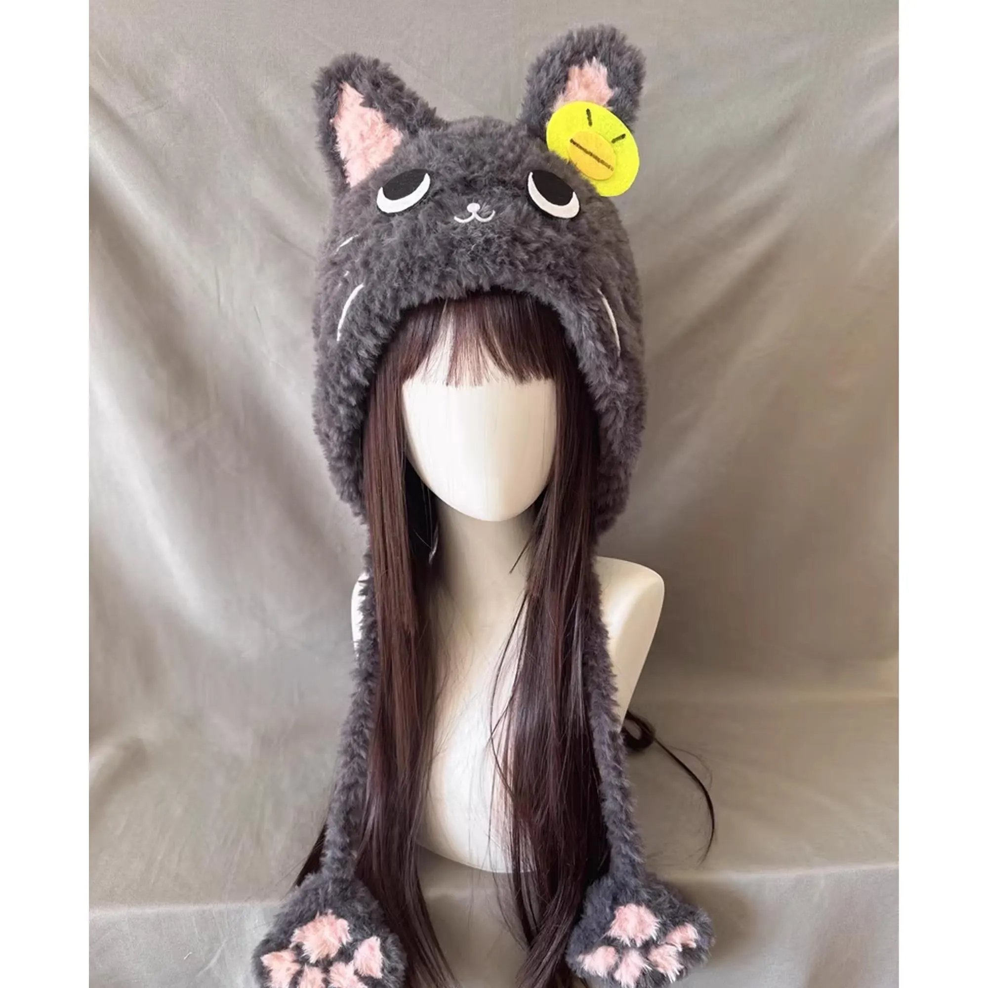 Kawaii Grey Cat Fuzzy Hat